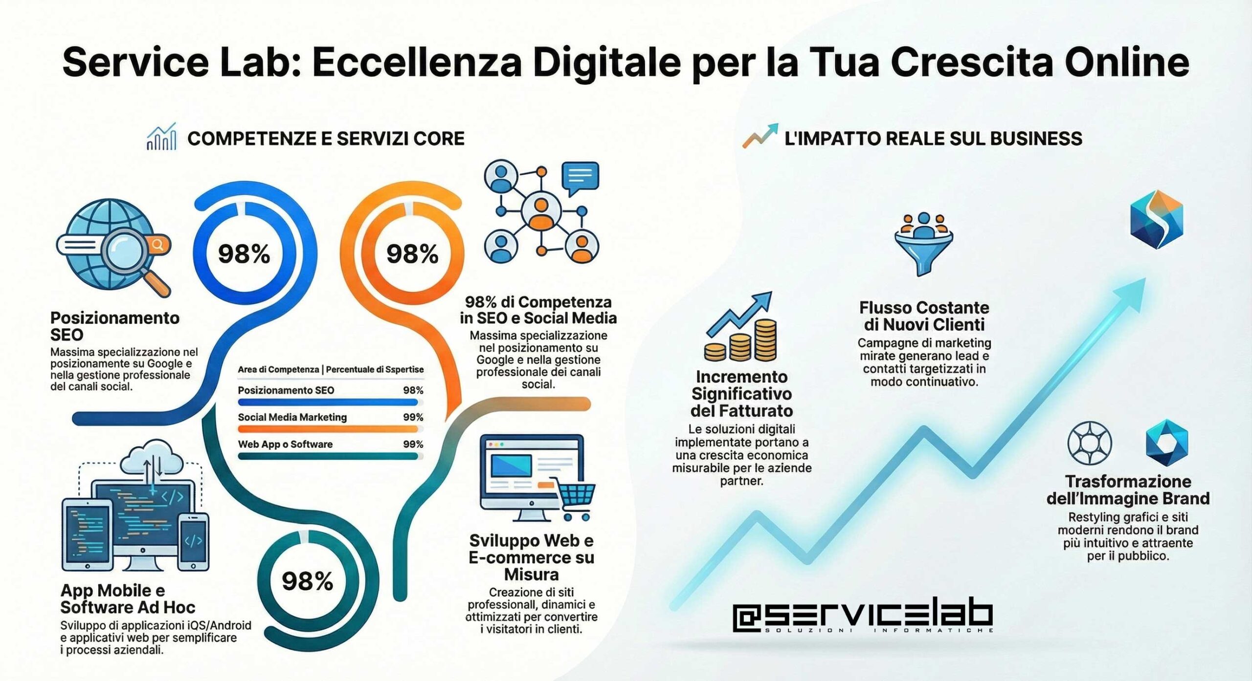 Sappiamo che ogni azienda è unica. Per questo, offriamo soluzioni personalizzate che si adattano perfettamente alle tue esigenze specifiche. Dalla creazione di siti web alla gestione dei social media, ogni servizio è progettato su misura per il tuo successo.